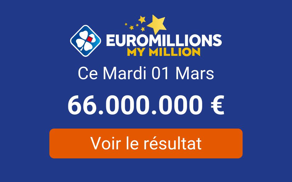 Le tirage de l’Euromillions My Million mettra en jeu un très gros jackpot de 66 millions d’euros ce soir. Après plus de deux semaines sans grand gagnant au rang n°1, que diriez-vous de remporter votr… [+3890 chars]