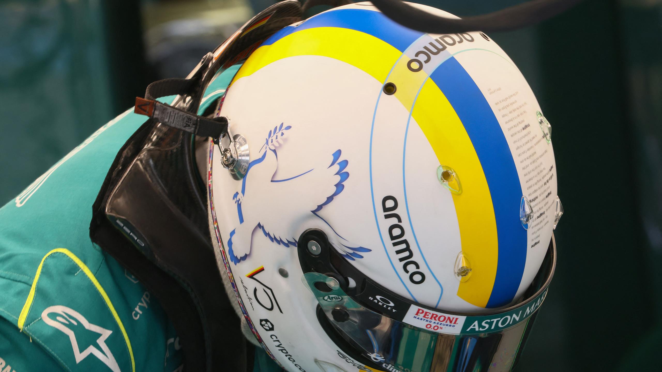 Sebastian Vettel hat für ein Detail an seinem Friedens-Helm Kritik einstecken müssen Fotocredit: Getty Images