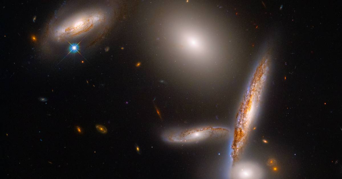 Op het beeld dat Hubble maakte, is de Hickson Compact Group (HCG) 40 te zien. Dat is een compacte groep van vijf sterrenstelsels. Geen cluster dus, gezien de HCG uit slechts vijf verschillende sterre… [+395 chars]