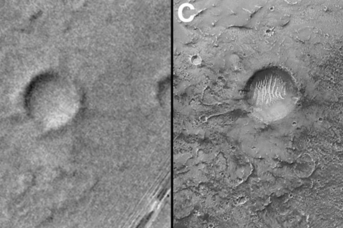 Krater ze zdjcia to Airy-0. Nazw zawdzicza brytyjskiemu astronomowi George'owi Biddellowi Airy'emu. Ponisz fotografi zrobiono 8 wrzenia 2021 r., podaje NASA. Zostaa ona wykonana za pomoc High-Resolut… [+1009 chars]