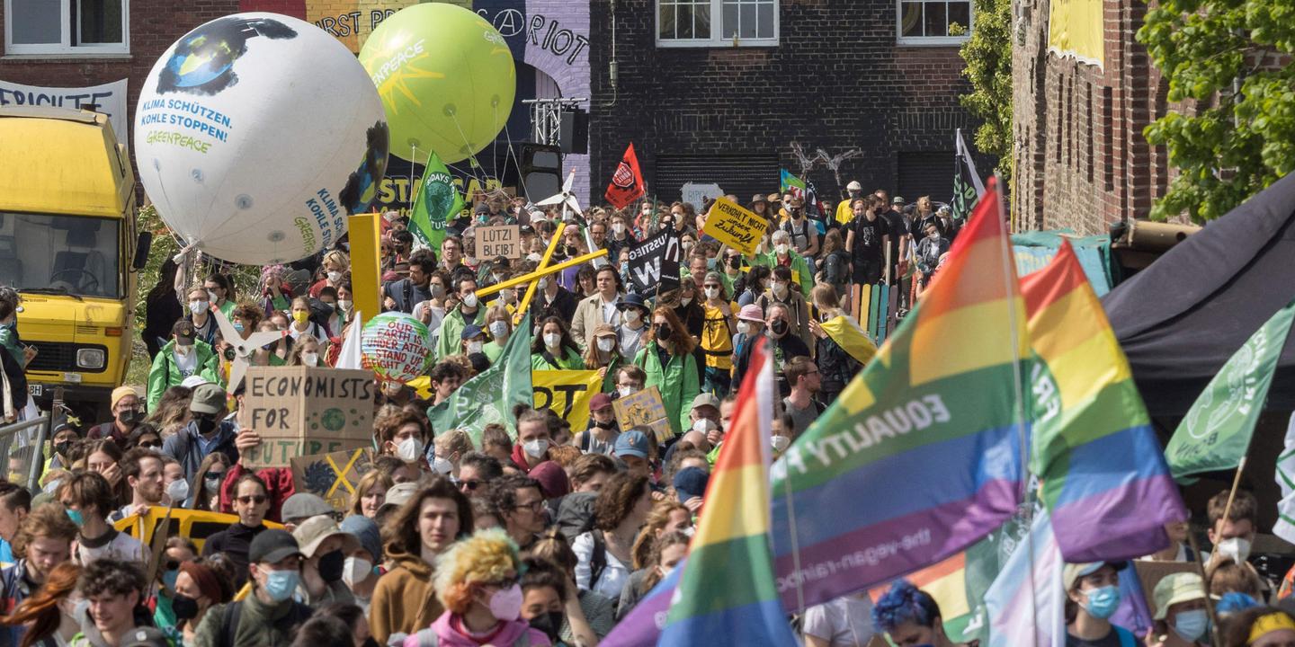 Manifestation contre la destruction du village de Lützerath pour lexpansion de la mine à ciel ouvert de charbon de Garzweiler, près de Lützerath, en Rhénanie-du-Nord-Westphalie, le 23 avril 2022. BER… [+2742 chars]
