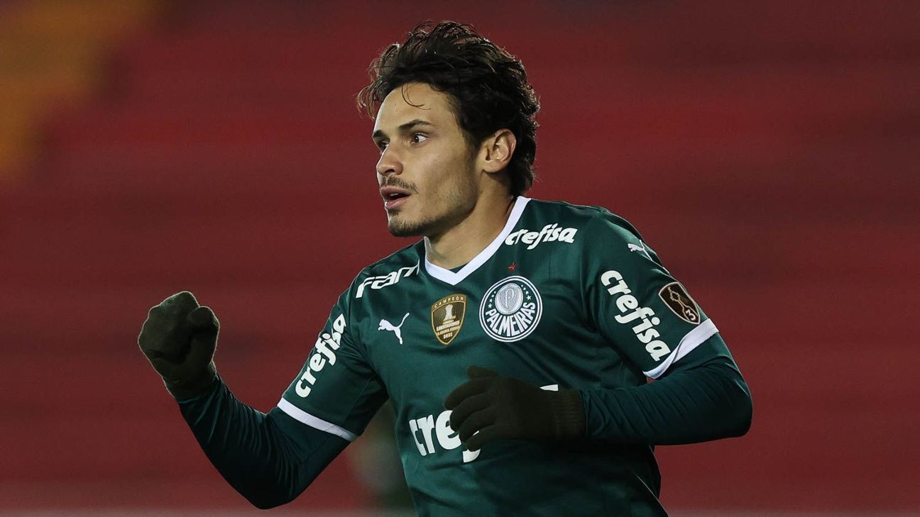 Com três gols de Raphael Veiga, um de Rafael Navarro e outro de Murilo, o Palmeiras goleou o Independiente Petrolero por 5 a 0 e garantiu vaga nas oitavas da Libertadores O Palmeiras é o primeiro ti… [+3929 chars]