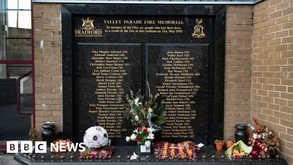 Image source, Bradford City Image caption, The memorial service was moved online during the pandemic but flowers were laid at the sculpture in Centenary Square A memorial service to remember 56 foo… [+1734 chars]