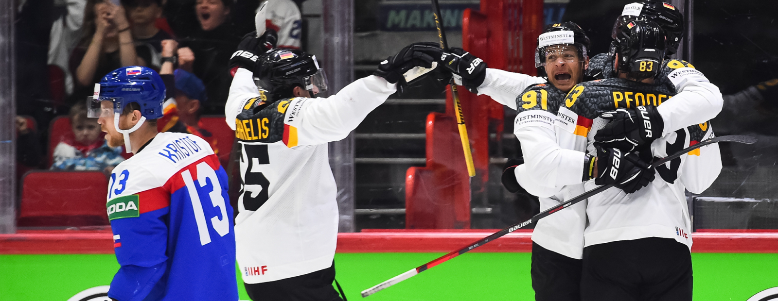 Vācija A grupas mačā pieveica Slovākiju ar 2:1 (0:0, 2:1, 0:0). 22.minūtē Vāciju vadībā izvirzīja Matiass Plahta, bet rezultāta starpību dubultoja Leonhards Pfēderls - 2:0. Slovākiem izdevās atspēl… [+1076 chars]