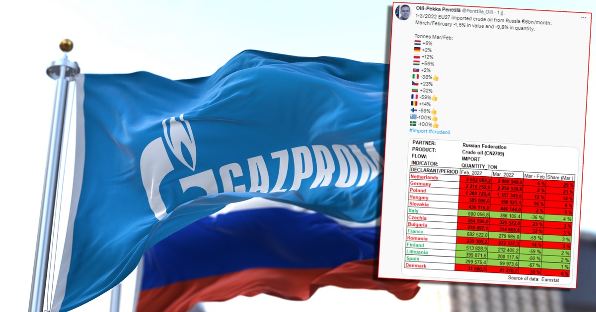 W marcu w porównaniu z lutym ilo ropy naftowej importowanej z Rosji do Unii Europejskiej spada o 9,8 proc., natomiast warto importu zmniejszya si o 1,5 proc. wyliczy na podstawie danych Eurostatu fis… [+1435 chars]