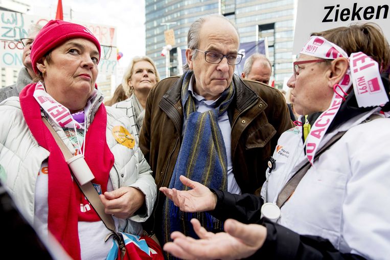 Ad Melkert, hier in 2020 als voorzitter van de Nederlandse Vereniging van Ziekenhuizen, in gesprek met ziekenhuispersoneel tijdens een landelijke staking.Beeld ANP De kern daarvan zou moeten zijn da… [+2387 chars]