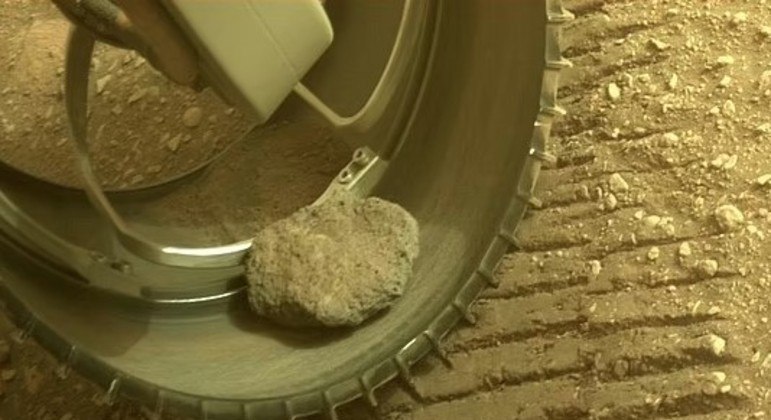 Uma pequena pedra está pegando uma carona há quatro meses no robô Perseverance da Nasa que está explorando a superfície de Marte. A rocha se prendeu à roda do dispositivo no início de fevereiro e de… [+1277 chars]