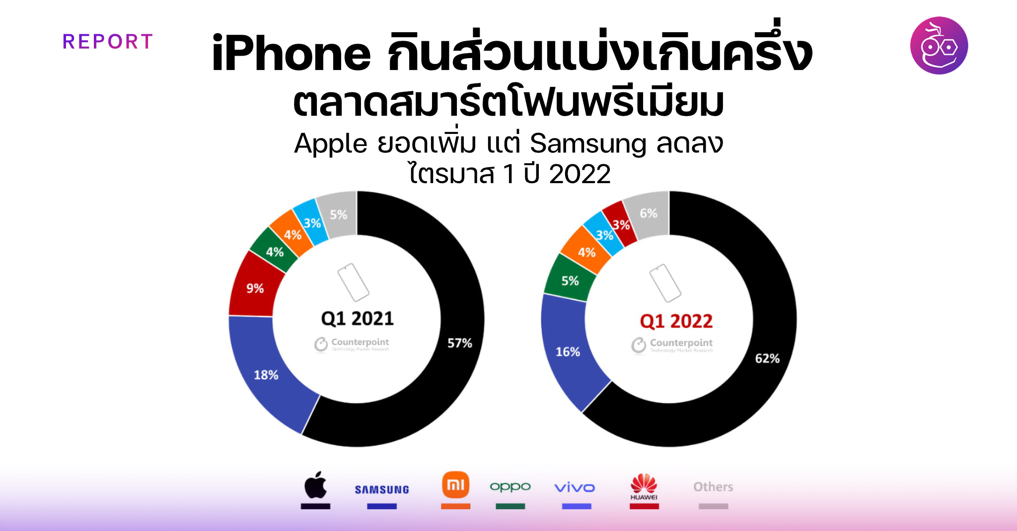 iPhone Apple 1 2022 62% Samsung ! Counterpoint Research () 1 2022 8% 10% Apple iPhone 13 .. 2021 2022 Samsung Apple Galaxy S22 Galaxy S22 Ultra Samsung 184% 3% , Counterpoint : iclarified