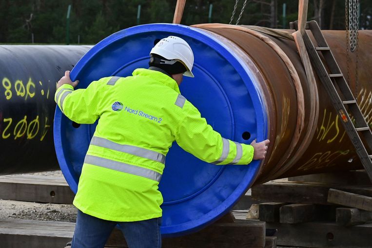 Een medewerker schroeft een dop op een gaspijp van de Nordstream 2 pijpleiding in aanbouw, in het Duitse Lubmin.Beeld Tobias Schwarz / AFP EU-landen moeten het komende najaar 15 procent minder gas g… [+4172 chars]