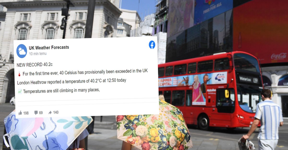 Jak donosi portal "UK Weather Forecast", w Londynie (Heathrow) o godz. 12.50 temperatura wzrosa do 40,2 st. C. Jest to zarazem najwysza temperatura odnotowana w Wielkiej Brytanii w historii. Poprzedn… [+745 chars]