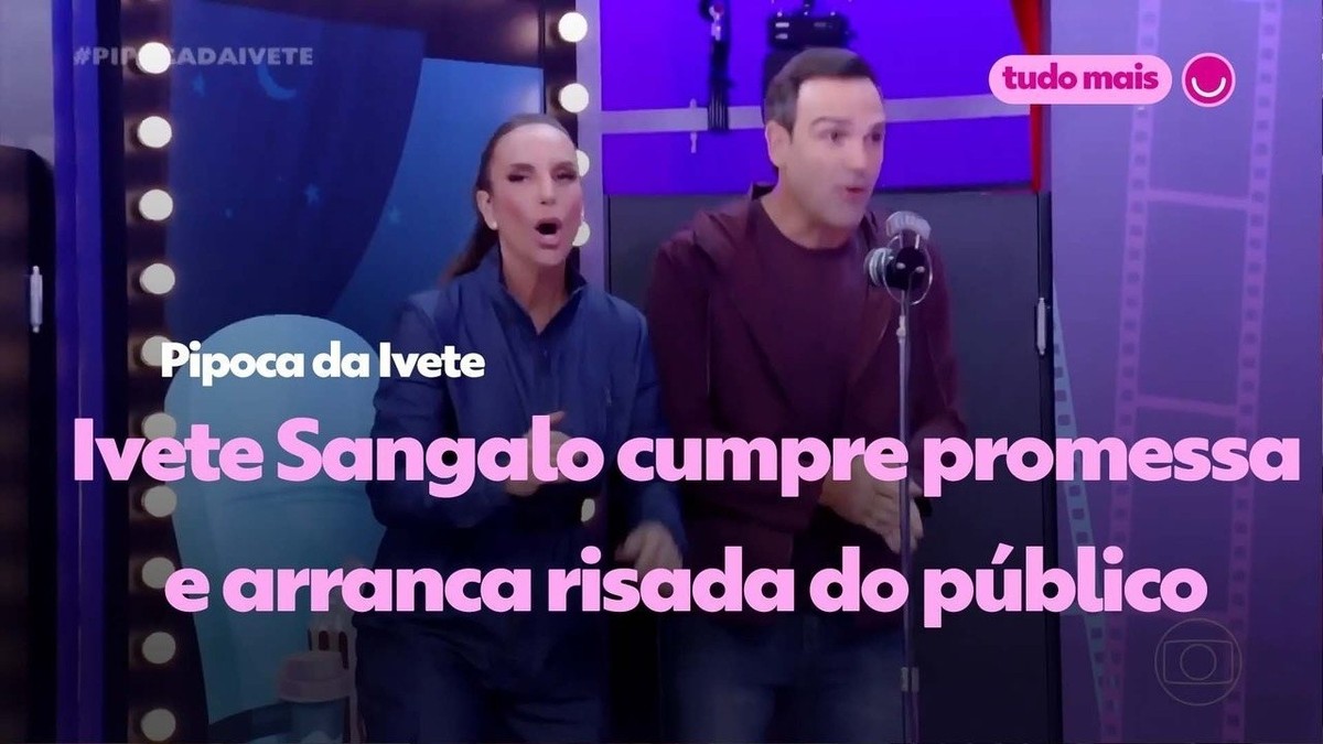 Ivete Sangalo cumpre promessa e arranca risada do público no 'Pipoca da Ivete' Tadeu Scmidt e Ivete Sangalo se divertem no 'Pipoca da Ivete' Foto: Globo Ivete Sangalo prometeu e cumpriu! A aprese… [+417 chars]