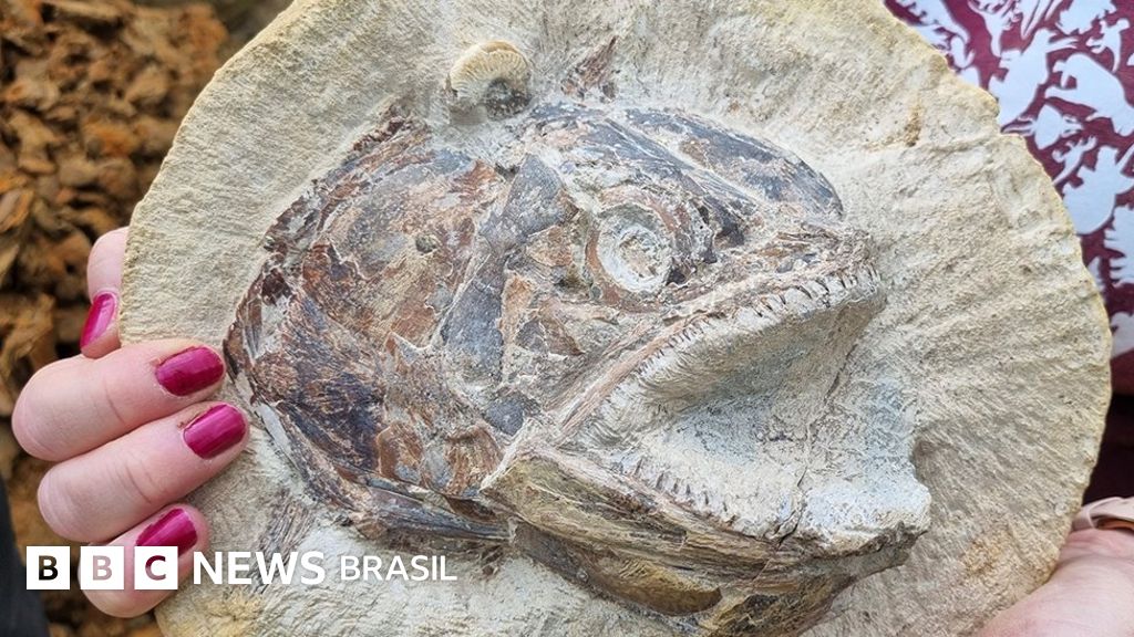 <ul><li>Jonathan Amos</li><li>Correspondente de ciência da BBC</li></ul> Crédito, Dean Lomax Legenda da foto, Pachycormus: parece que o peixe vai pular em você Um fóssil de peixe com aparência fer… [+3910 chars]