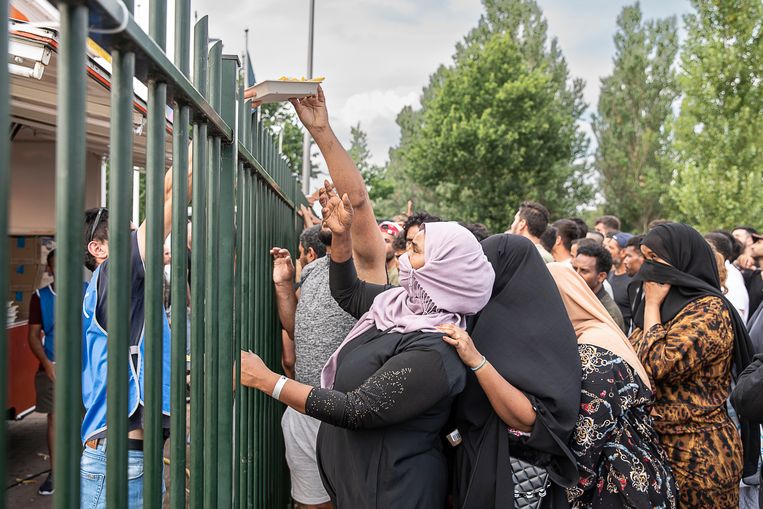 In Ter Apel worden dinsdag bij het azc porties frites met kipstukjes en salade uitgedeeld vanuit een rijdende snackbar.Beeld Harry Cock / de Volkskrant Ruim 200 gemeenten hebben geen centrale opvang… [+3662 chars]