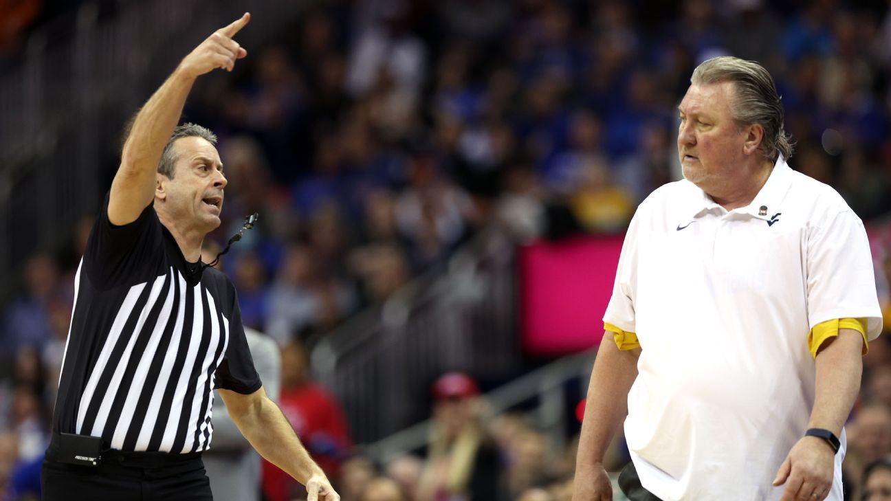 Bob Huggins tossed from West Virginia Mountaineers-Kansas Jayhawks Big 12 men's basketball tournament clash - ESPN